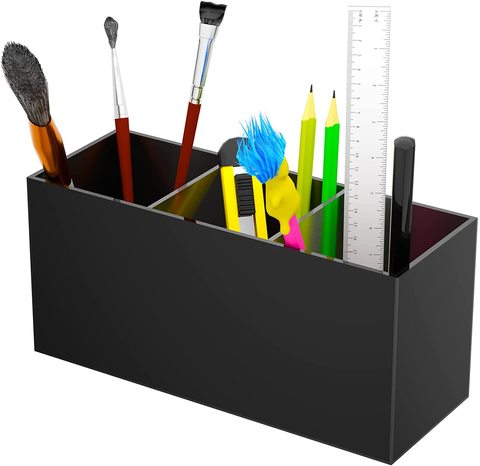 1/2/3/4 Slots Black Makeup Brush Holder Pen Pencil Cup Stand Cosmetic Storage Box Desktop Stationery Organizer with Compartments