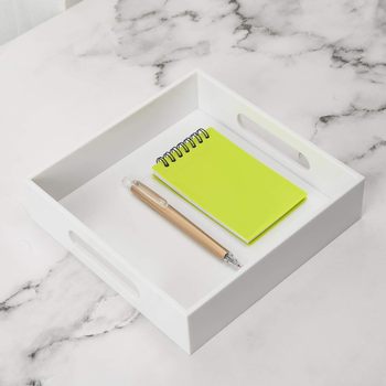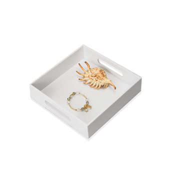 Vassoio da portata in acrilico bianco con manici decorativo piccolo rettangolo vassoio da cucina da banco-cassetto per il trucco Organizer
