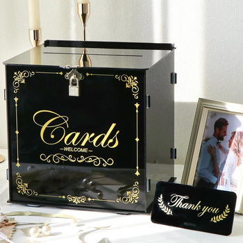 Scatola di carte in acrilico nero per biglietti d'invito scatola in acrilico con Slot e lucchetto e cerniera